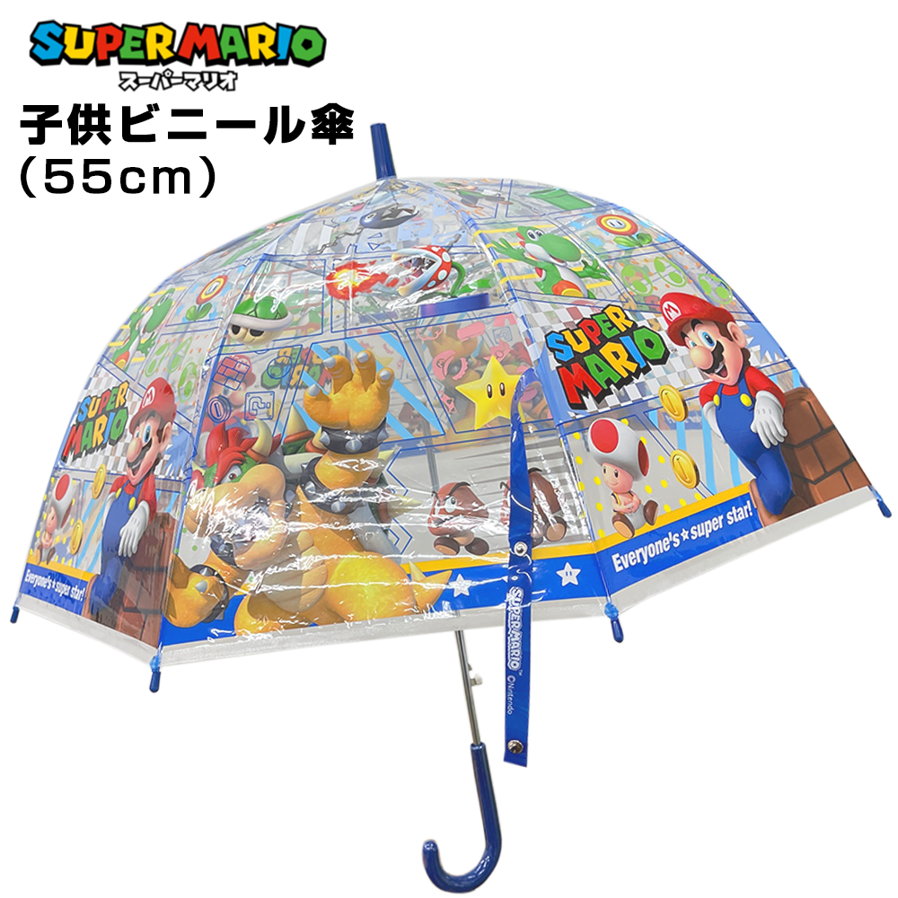 スーパーマリオ ワンタッチ 子供ビニール傘 (55cm) コミック 32484 ジャンプ傘/ドーム型/長傘/キャラクター/かわいい/おしゃれ/レイングッズ/雨具