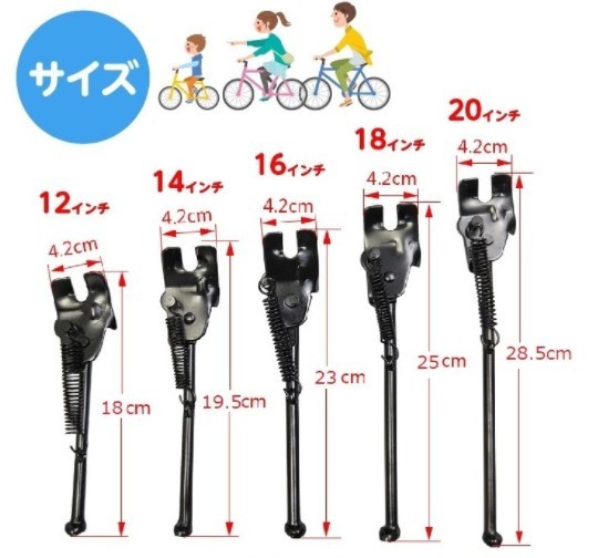 自転車 スタンド 12 14 16 18 20 インチ 子供用 幼児用 片足 取り付け簡単 キックスタンド サイドスタンド