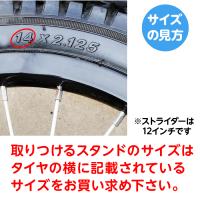 自転車 スタンド 12 14 16 18 20 インチ 子供用 幼児用 片足 取り付け簡単 キックスタンド サイドスタンド※メーカー純正品と多少のサイズ誤差がございますが、取り付けには問題はございません。※長さの長短は角度で調整出来ますので最後の微調整はご自身でお願い致します。※お安く商品を提供する為に簡易梱包で発送させていただいており、配送時に塗装の剥げなどが出た場合はご自身でスプレーなどで補修していただけたらと思います(^-^;※取り付け部にある凹みは不良ではなく、スタンドが回転防止用の凹みです子供用自転車の小さい自転車サイズ対応。取り付けもナットを外さず、緩めてこのサイドスタンドを差し込むだけで装着可能ストライダーには12インチくらいがおすすめです♪(ストライダー純正のスタンドではないので、取り付けに関する不具合は自己責任でお願いします)私のストライダーには最後の画像の様に取り付け出来ますが、根元まで入れると角度がつき過ぎるので深く入れないのがオススメです(^^♪)少し不安な差しこみですが、店長の子どもは兄弟で約2年外れませんが保障は出来ません