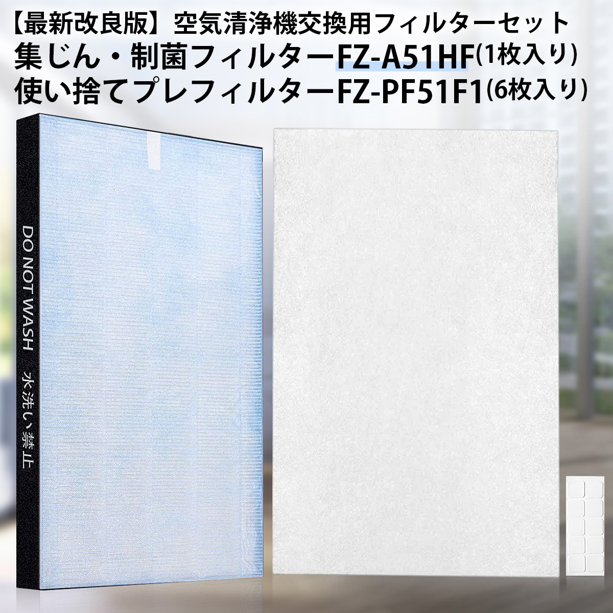 | シャープ(sharp)空気清浄機対応 交換用フィルターセット、集じん・制菌HEPAフィルター FZ-A51HF と 使い捨てプレフィルター (6枚入) FZ-PF51F1 「互換品」 |