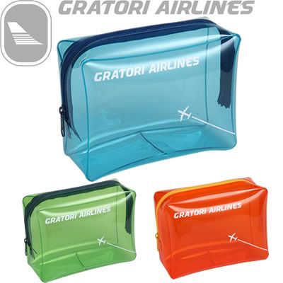 カラービニールポーチの収納ポーチLサイズ。旅行時の化粧品や洗面用品をたっぷり収納するのにちょうど良いサイズです。