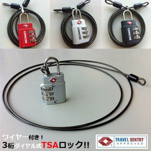 1.5mのワイヤー付きTSA南京錠!3桁ダイヤルで暗証番号を簡単に設定可能。アメリカ(ハワイ・グアム諸島含む)旅行の必需品!