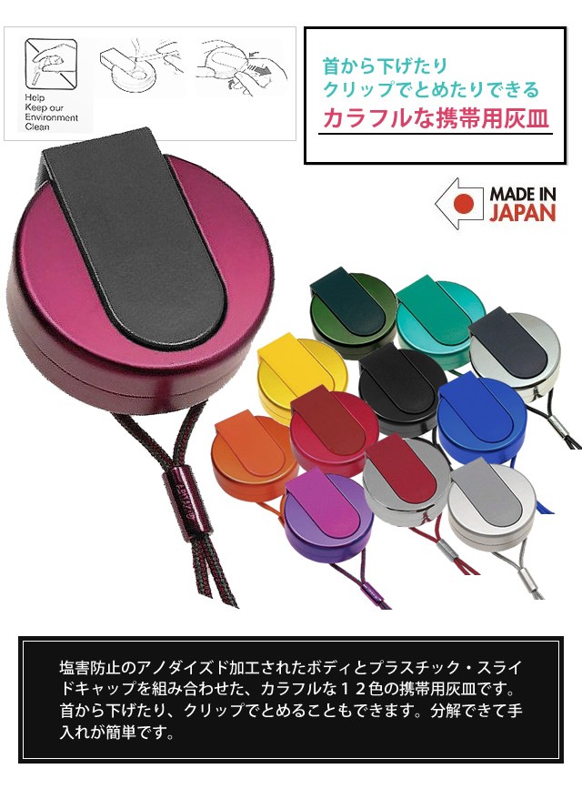 首から下げたりクリップでとめれる携帯用灰皿 *旅行用品/便利グッズ/携帯灰皿/禁煙/カラフル/アシュトレイ/メンズ/父の日/ギフト/ABITAX/おしゃれ*