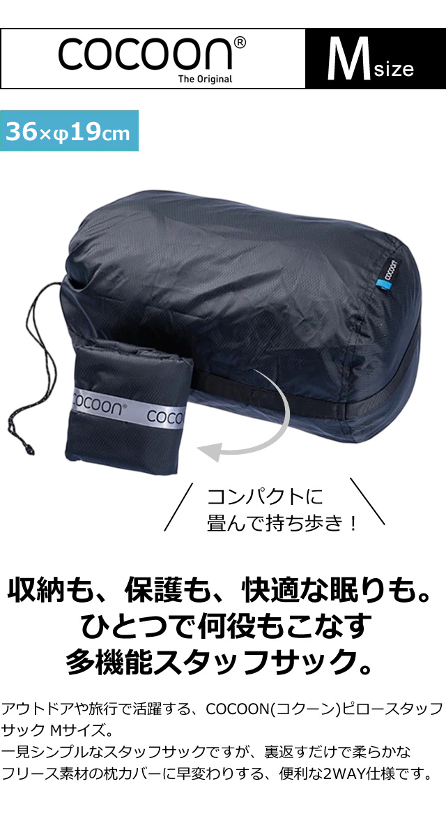 アウトドアや旅行で活躍する、COCOON(コクーン) ピロースタッフサック Mサイズ。