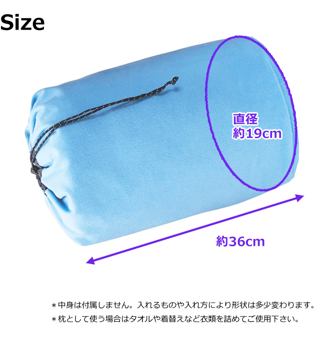 タオルや着替え、ダウンジャケットなどを詰めれば、キャンプや車中泊、山小屋泊でも自分好みの快適な枕がすぐに完成します。
