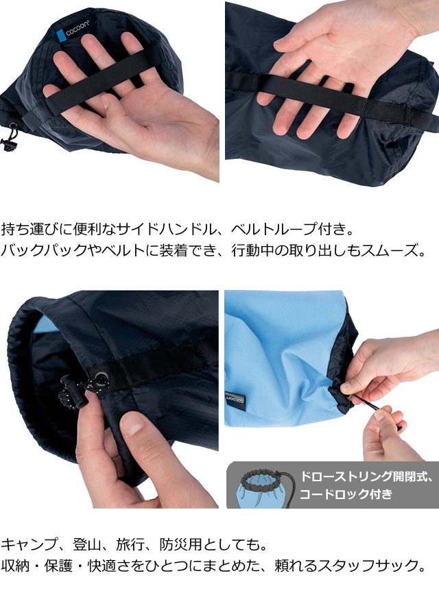 収納・保護・快適さをひとつにまとめた、頼れるスタッフサックです。