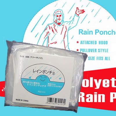 コンサート、スポーツ観戦、運動会などのイベントに最適!使い捨て感覚の透明レインポンチョです。