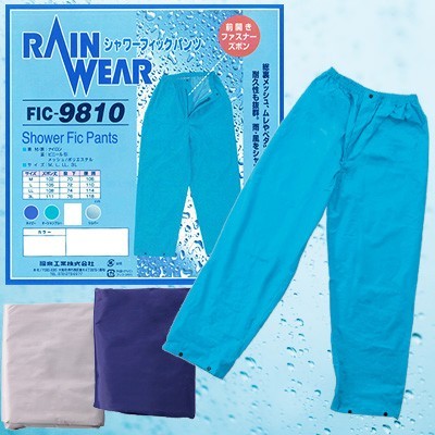特徴:防水・撥水・パンツ裾調整可能・メッシュ付・前開きファスナー