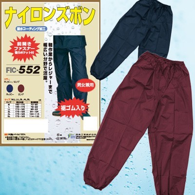 前開きファスナー・後ろポケット付・裾ゴム入り!