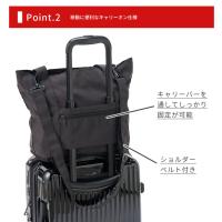 移動に便利なキャリーオン仕様で、スーツケースのキャリーバーにも通せるポケット付き。