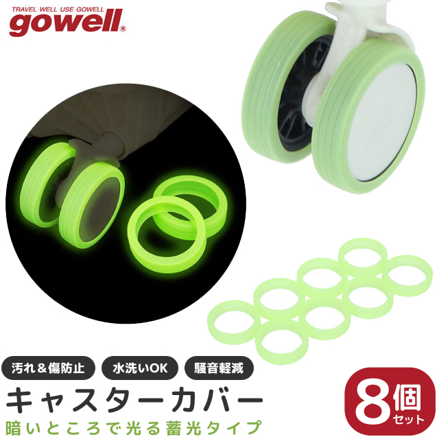 汚れ&傷防止ができて夜道で光る *旅行/トラベル/海外旅行/旅行用品/旅行グッズ/トラベルグッズ/便利グッズ/トラベル便利グッズ/キャスターカバー/タイヤカバー/車輪カバー/スーツケース用/キャリーケース用/8輪対応/8個セット/蓄光/発光/イエロー/汚れ防止/水洗い可/水で洗える/光る/イエロー/黄色/騒音対策/騒音低減/騒音軽減/ダブルキャスター/gowell/ゴーウェル/衛生的/メンズ/レディース/男性/女性/男女兼用/長距離移動/長時間移動/長距離フライト/父の日/母の日/敬老の日/ギフト/プレゼント/帰省/修学旅行/卒業旅行/出張/ビジネス/機能的*