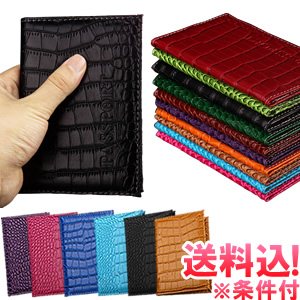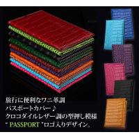 旅行に便利なワニ革調パスポートカバー♪クロコダイルレザー調の型押し模様に。鮮やかなカラーリング(PASSPORTロゴ入り)が目を引くデザイン。