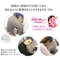 顔周りと両側に穴が空いており、抱きかかえるようにして使用できるエアピローです。