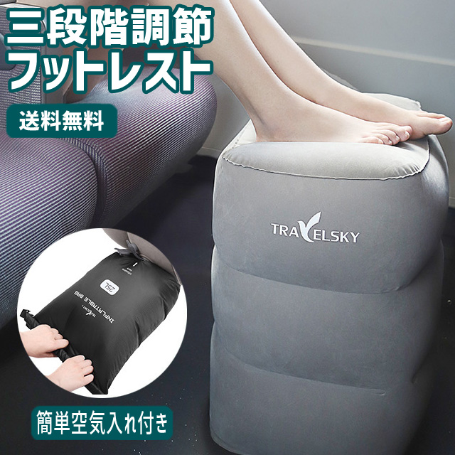 送料無料!三段階に調節可能なフットレスト! *海外旅行用品/旅行便利グッズ/男女兼用/トラベルグッズ/トラベル便利グッズ/ギフト/プレゼント/メンズ/レディース/旅行/機内用品/フットレスト/高速バス/夜行バス/飛行機/持ち歩き/空気式/空気入れ簡単/オットマン/機能的/エコノミー症候群/むくみ防止/エアークッション/新幹線/車/オフィス/仮眠/快眠/リラックス/20代/30代/40代/50代/60代/ドライブ/後部座席/子供/子ども/キッズ/リクライニングチェア/足置き台/足乗せ台/足用/高さ調節/すき間/隙間/車中泊/デスクワーク/デスク/スペースクッション/特価*