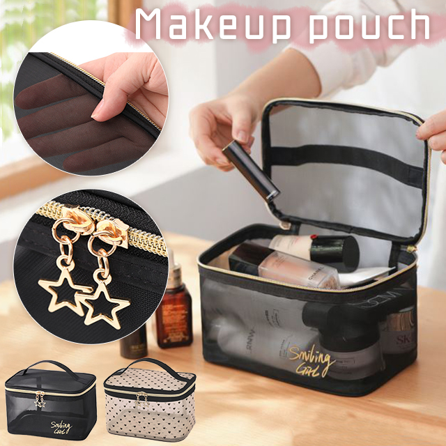 中身が見える、おしゃれなブラックメッシュのバニティポーチ。