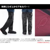 ロングブーツもカバーする長さで、レインパンツよりかさばらず、動きやすく、脱ぎ履きしやすい仕様です。