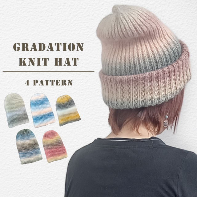 グラデーションカラーがおしゃれなニット帽。