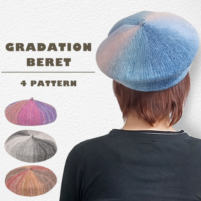 グラデーションカラーがおしゃれなベレー帽。