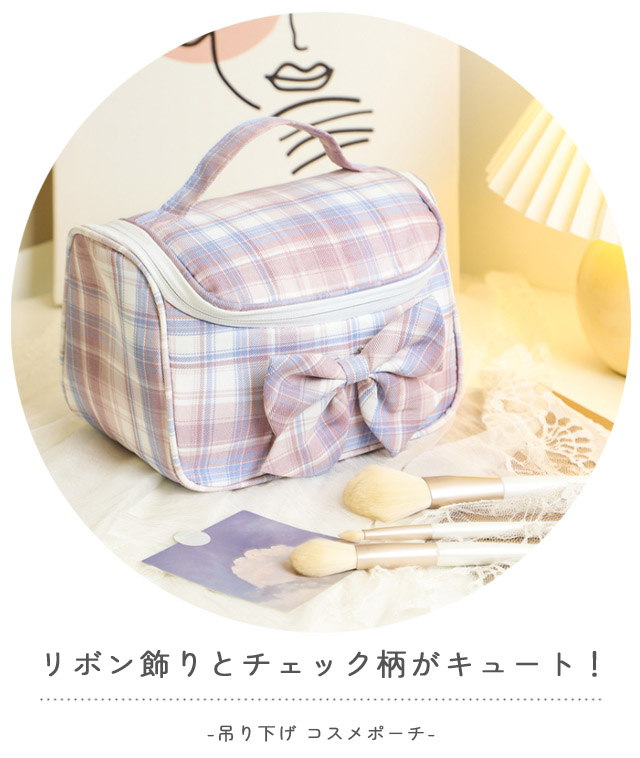 *整理/収納/ハンギングポーチ/ハンガーポーチ/トイレタリーポーチ/トラベル/バニティポーチ/バニティーポーチ/メイク道具/化粧ポーチ/小物入れ/メイクポーチ/大きい/大きめ/小物ポーチ/ガーリー/レディース/女性/女子/女の子/ガールズ/小学生/中学生/高校生/JK/大学生/温泉/ジム/フィットネス/学生旅行/修学旅行/卒業旅行/お風呂/バス/洗面所/化粧道具/メイクボックス/ハンドル/持ち手付き/手持ち/おしゃれ/かわいい/飾り/チェック柄/パッキング/持ち運び/持ち歩き/出張/メッシュポケット/ハンガー/機能的/軽い/軽量/布製/文具入れ/文房具/筆箱/ペンケース/マチ付き/マチあり/底マチ/メイクブラシ/化粧筆/筆入れ/オーガナイザー/ロッカー/便利/大人/子供/子ども/ファスナー/ジッパー/プレゼント/ギフト/誕生日/バースデー/韓国/雑貨/パステル/ピンク/パープル/紫/ネイビー/紺/ベージュ/ブルー/青/くすみカラー/ニュアンスカラー/制服風/制服コーデ/ブレザー/蝶々結び/ちょうちょ結び/リボン結び/スクールリボン/10代/20代/30代/彼女/淡色/女友達*