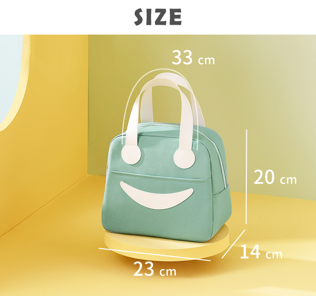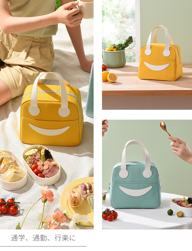 にっこりと笑った顔のようにみえる、可愛らしいランチバッグです。