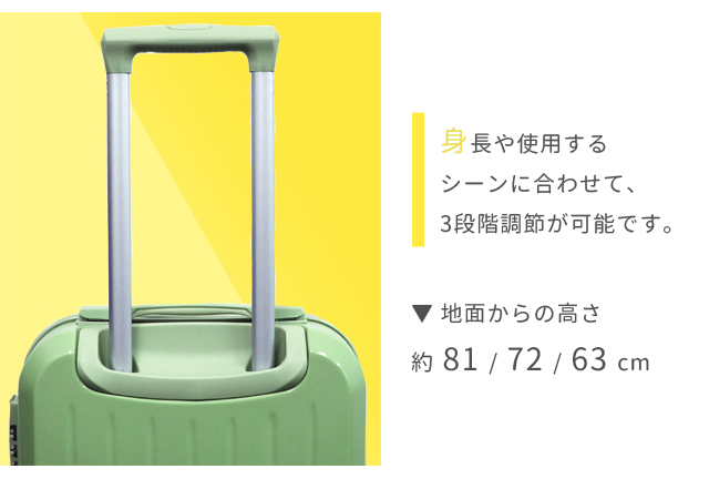 ハンドル段階数(約):3段階(約81/72/63cm)