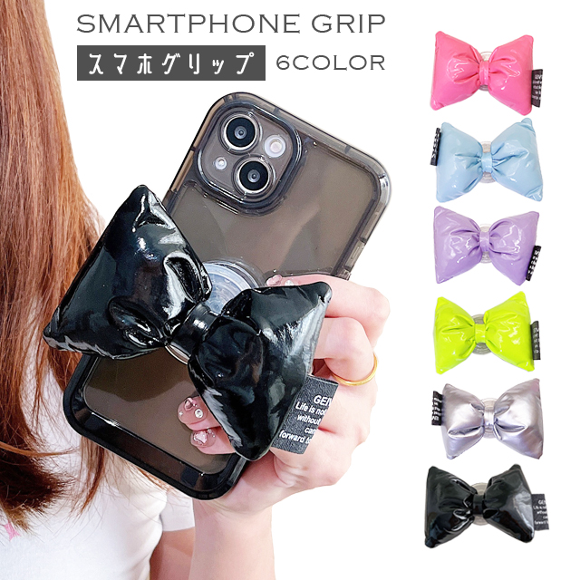 リボン型のスマートフォングリップ *スマホグリップ/スマートフォン/スマホ/スマホアクセサリー/グリップ/リボン/お洒落/おしゃれ/オシャレ/りぼん/可愛い/かわいい/落下防止/スマホスタンド/スマホリング/スマホホルダー/カラフル/ポップ/ピンク/ブルー/パープル/ネオンイエロー/シルバー/ブラック/水色/スカイブルー/紫/黄緑/銀/黒/粘着/接着タイプ/プチプラ/学生/社会人/学校/中学生/高校生/通学/通勤/アクセ/スマホアクセ/推し色/推し活/オタ活/ヲタ活/スタンド機能/グリップトック/iPhone/アイフォン/android/アンドロイド/プチギフト/プレゼント/携帯リング/片手操作/バンカーリング/韓国/全機種対応/多機種対応/10代/20代/30代/40代*