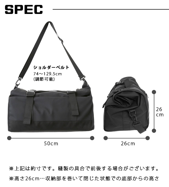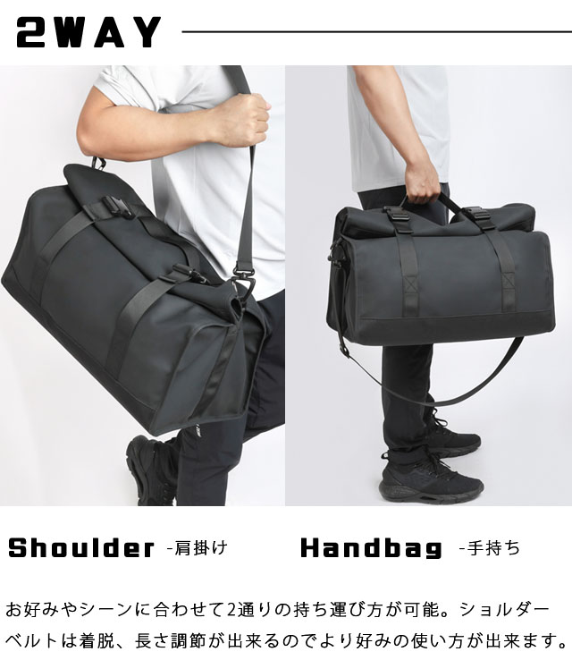 旅行、ジム、スポーツ、アウトドアなどさまざまなシーンで使えるボストンバッグ。
