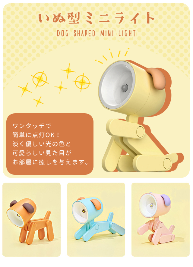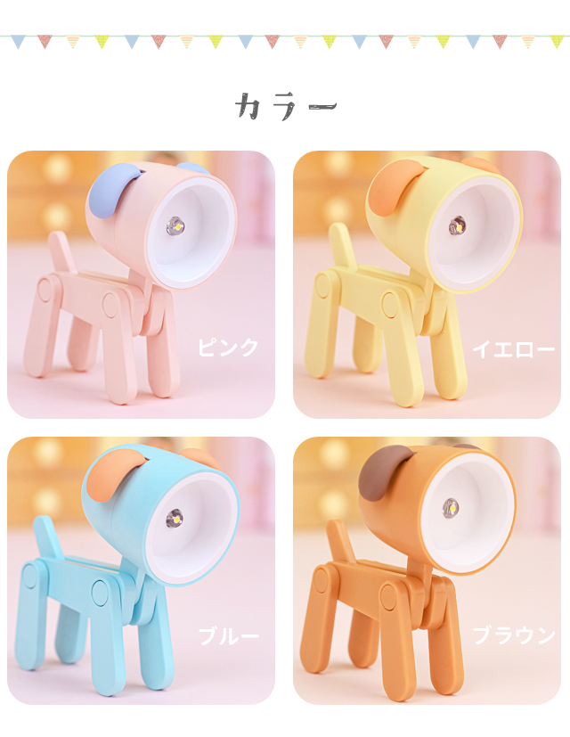 可愛らしい犬型のミニライト *ライト/ミニ/電気/ミニライト/犬/イヌ/いぬ/ワンコ/犬型/いぬ型/可愛い/電池式/小さい/小さめ/充電不要/ボタン電池/かわいい/インテリア/おしゃれ/お洒落/オシャレ/寝室/照明/卓上/ギフト/プレゼント/プチギフト/子供/こども/子ども部屋/玄関/装飾/アニマル/動物/デスクライト/入学祝い/小学校/中学校/女子/男子/玩具/おもちゃ/クリスマス/ナイトライト/照明/テーブルランプ/ミニ/コンパクト/手のひらサイズ/可愛い/卓上ライト/おもちゃ/ミニチュア/カラフル/くすみカラー/カラフル/ピンク/ブラウン/イエロー/ブルー*