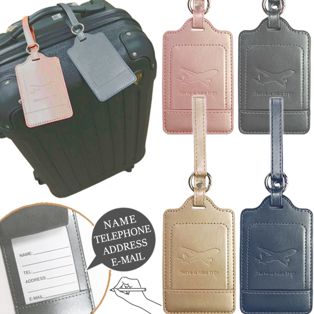 *名札/ネームタグ/目印/旅行/トラベル/男女兼用/おしゃれ/フラップ付き/ラゲージタグ/かわいい/カラビナ付き/レザー風/レザー調/フェイクレザー/ロゴ入り/英字/英語/アルファベット/ゴールド/金色/黄金/ピンク/ネイビー/紺/青/ブルー/紺色/グレー/飛行機柄/旅行柄/レザー風/名前タグ/迷子札/盗難予防/セキュリティ/防犯/名前/住所/ストラップ/盗難防止/バッグアクセサリー/トラベルグッズ/旅行グッズ/海外旅行/飛行機/旅行用品/旅行便利グッズ/ネームホルダー/安全/安心/便利/高級感/旅行小物/海外/学生/修学旅行/卒業旅行/留学/女子旅/出張/バック/かばん/鞄/キャリー/荷物札/スーツケース/キャリーバッグ/キャリーバック/キャリーケース/展示会/ネームカード/旅行バッグ/上品/シンプル/メタリックカラー/シャイニーカラー/女性/男性/メンズ/女の子/男の子/レディース/子ども/子供/10代/20代/30代/40代/50代/60代/フォーマル/紛失防止/撥水/ギフト/プレゼント/贈り物/ホワイトデー/バレンタインデー/クリスマス/父の日/母の日/敬老の日/飾り*