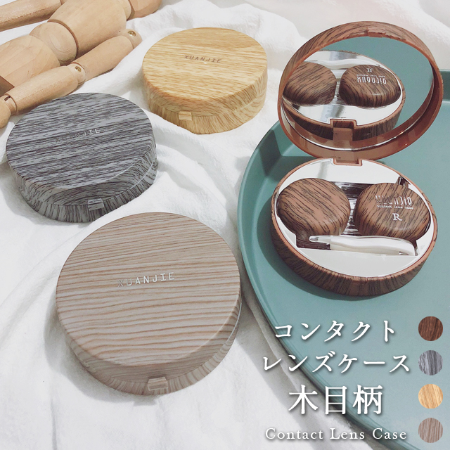 木目調のナチュラルなコンタクトレンズケース *ソフトレンズ/ソフト/コンタクト/コンタクトレンズ/コンタクトケース/コンタクトレンズケース/収納/カラコン/カラコンケース/カラコンレンズケース/木目柄/木調/木目風/プラスチック/コンパクト/持ち運び/携帯/持ち歩き/おしゃれ/お洒落/オシャレ/かわいい/可愛い/お泊り/ミラー付/鏡付/お手入れ/シンプル/シリコンピンセット/シリコン製/シリコンスティック/吸盤スティック/吸盤型スティック/カラーコンタクトレンズ/清潔/衛生/衛生用品/軽量/軽い/小さい/丸い/丸型/円型/円形/丸形/ブラウン/ライトブラウン/グレー/ナチュラル/グレージュ/灰色/茶/旅行/出張/トラベル/トラベルグッズ/小型/木っぽい/ケース/便利グッズ/保存/保存容器/コンタクト容器/レンズ/保存ケース/花粉症*