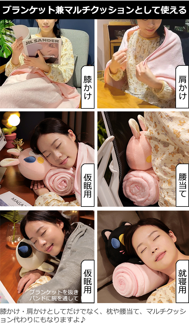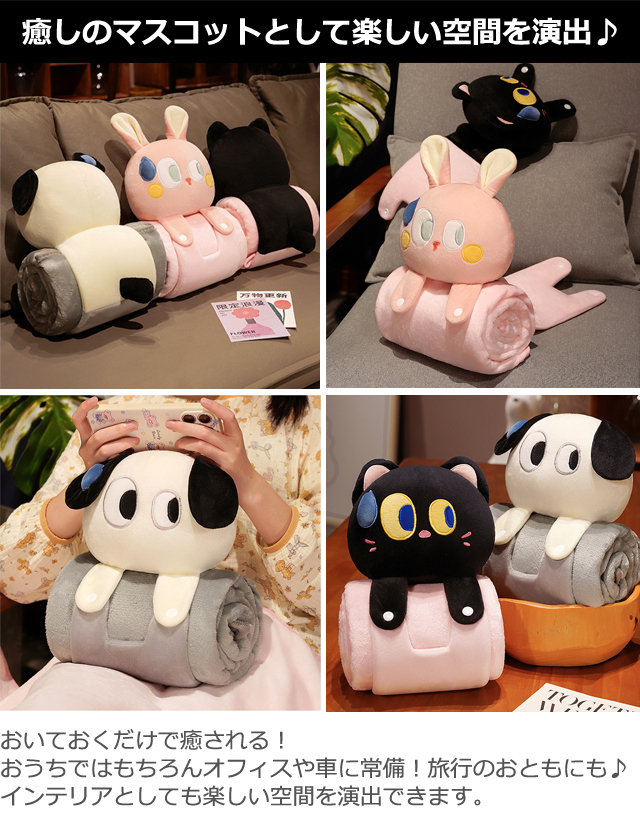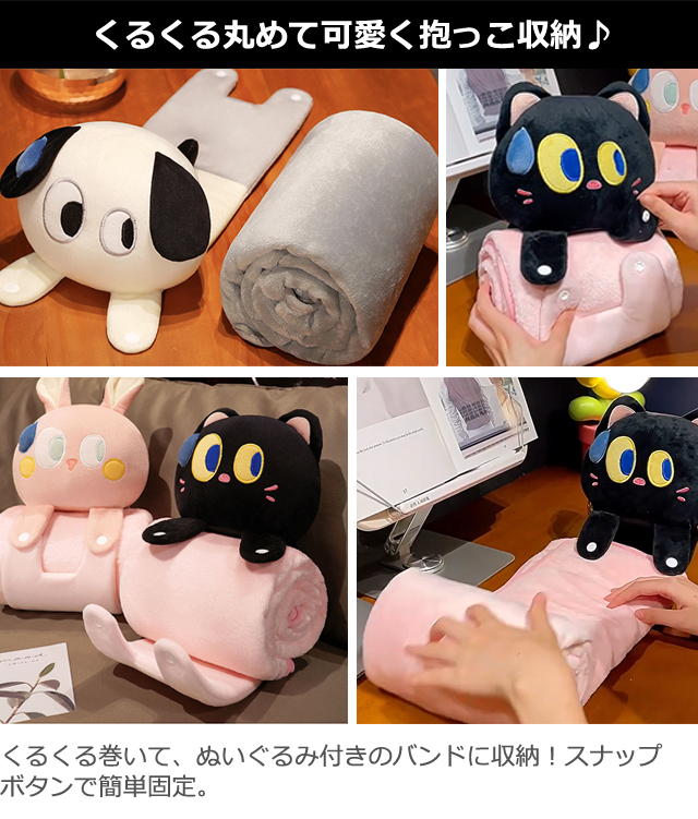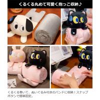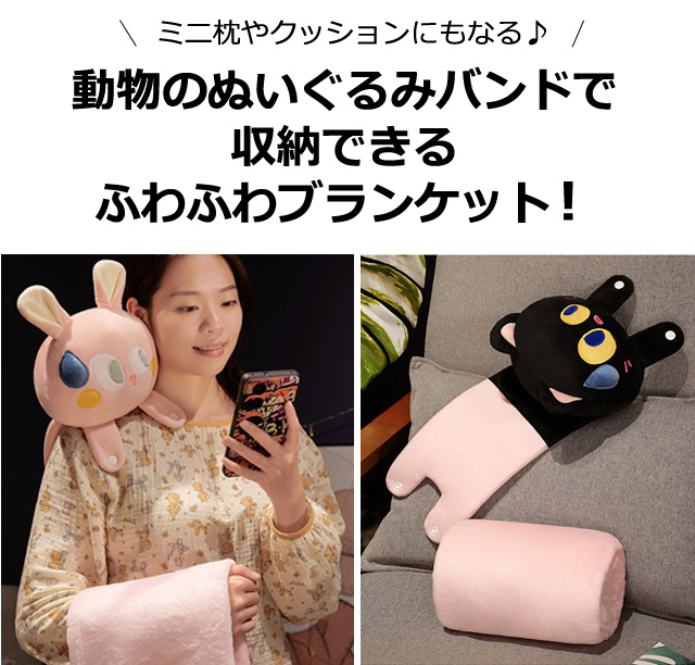 可愛い動物のぬいぐるみバンドで収納できるふわふわブランケット!