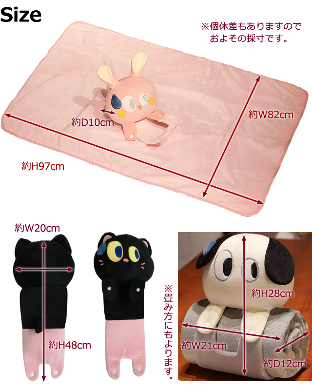 サイズ(約):ブランケット/97×82cm ぬいぐるみ単体/20×48×10cm