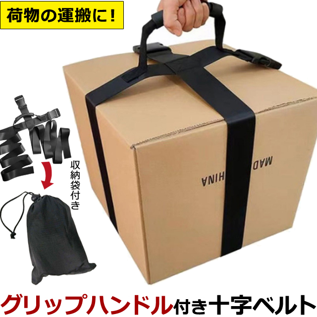 ダンボール箱など、持ち辛い荷物を楽に運べる!グリップハンドル付きの運搬用十字ベルトです。