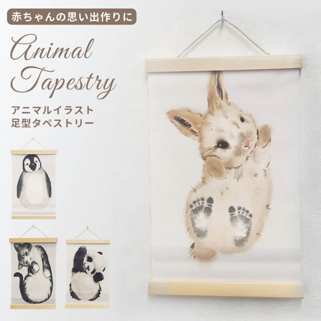 赤ちゃんの小さな足の形を可愛らしい動物たちのイラストとともに永遠の思い出として残せるアイテム。