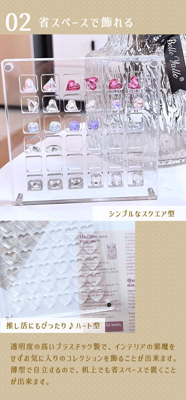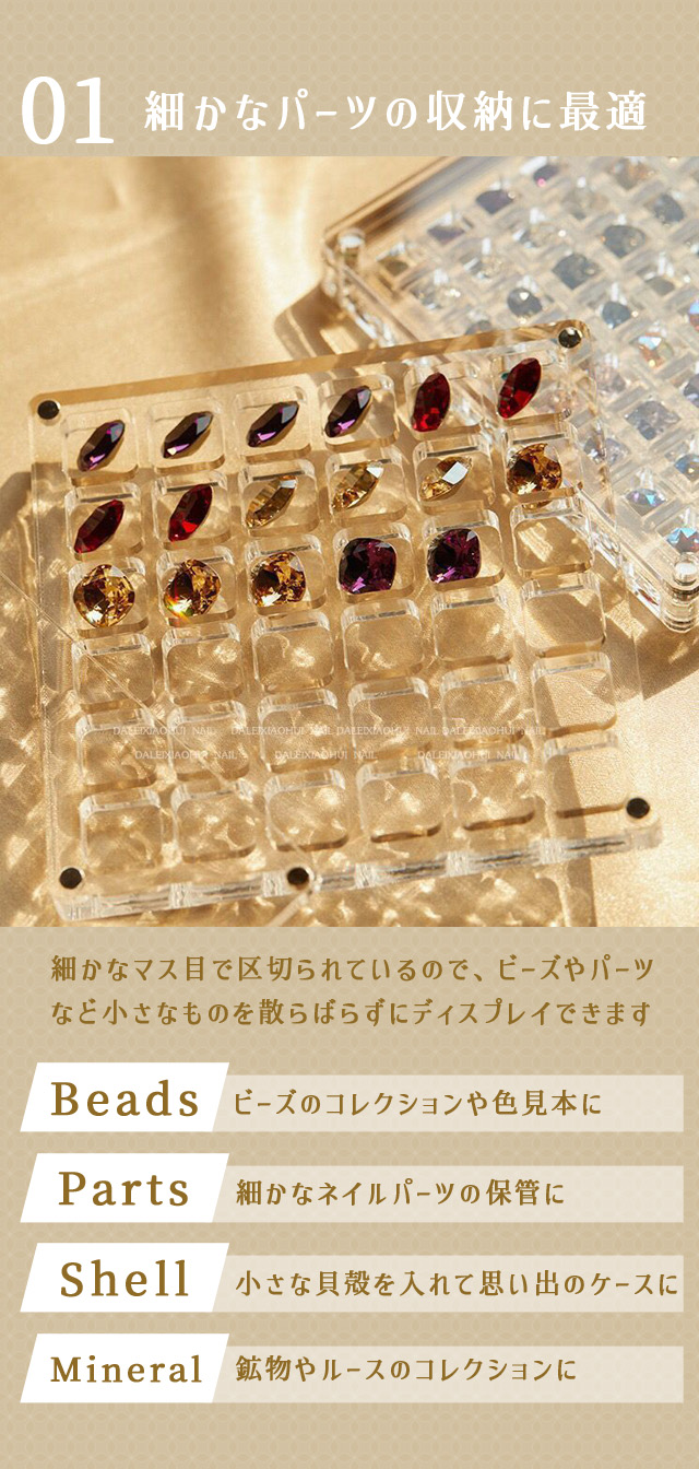 *小分け/仕分け/整理/収納用品/収納グッズ/フレーム/ネイルパーツ/アクセサリーパーツ/コレクション/小物整理/マス目/収納ボックス/パーツ入れ/パーツ整理/思い出/デコパーツ/レジンパーツ/ジェルネイルパーツ/レジン封入/封入パーツ/ネイル用品/ボタン/展示台/見本台/モチーフ/ディスプレイフレーム/ディスプレイスタンド/ディスプレイ台/スタンド/透明ケース/アクリルケース/小さい/薄型/スリム/軽量/軽い/作品/展示/ハンドメイド/磁石/宝石/鉱石/ビジュー/立つ/自立/細かいパーツ/小さいパーツ/クリアボックス/小物入れ/省スペース/棚/インテリア/おしゃれ/かわいい/シンプル/ミニ/ネジ/仕切りケース/仕切り付き/埃避け/ほこり避け/ホビー/蓋付き/フタ付き/見せる収納/置き型/推し/推し活/オタ活/ジュエリー/保管ケース/ルース/ルースケース/宝石ケース/宝石ルース/天然石/化石/鉱物標本/ハート形/ハート型/ユニーク/個性的/マグネット/卓上/貝殻*