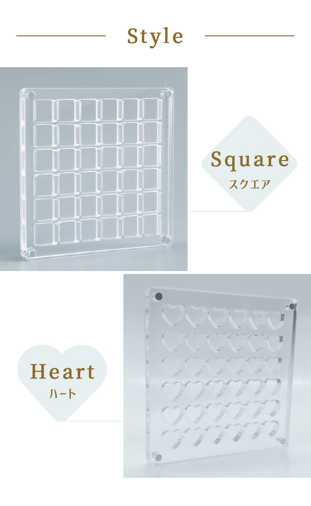 シンプルなスクエア型と推し活にもピッタリのハート型の2スタイル