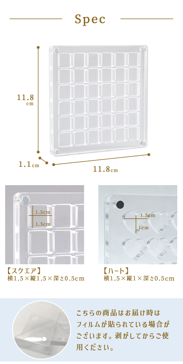 サイズ(約):本体/11.8×11.8×1.1cm マス目/【スクエア】1.5×1.5×0.5cm 【ハート】1.5×1×0.5cm