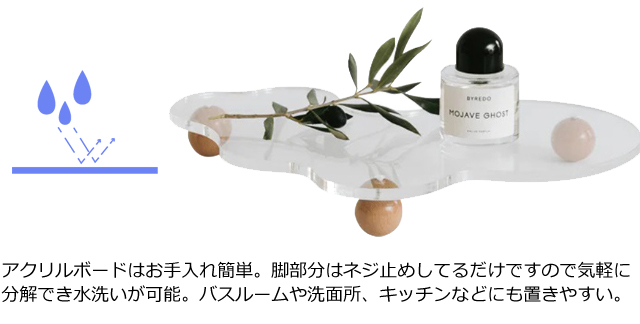 アクリルボードはお手入れも気軽で簡単。脚部分はネジ止めしてるだけですので気軽に分解でき水洗いが可能。