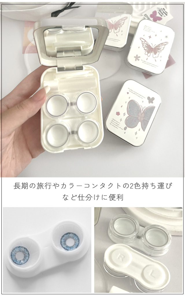 *コンタクトレンズケース/コンタクト入れ/レンズケース/収納ケース/可愛い/キュート/女性/女の子/レディース/カラコン/カラーコンタクト/コスプレ/イベント/推し活/仮装/お出かけ/旅行用/トラベル用品/旅行用品/宿泊/お泊り/修学旅行/中学生/高校生/携帯ケース/持ち歩き/ミラー付き/鏡付き/ハード用/ハードコンタクト/保存液入れ/洗浄液入れ/容器付き/ピンセット/道具付き/ちょうちょ/バタフライ/ギャル/シルバー/軽量/軽い/小さい/ソフトレンズ/ソフトコンタクト/カラコンレンズケース/プラスチック/お手入れ/シリコンピンセット/シリコンスティック/吸盤/衛星/衛生用品/出張/長期旅行/2組/使い分け/コンタクト容器/保存ケース/保存容器/交換用/色分け/レトロ/平成レトロ/おしゃれ/携帯用/持ち運び*