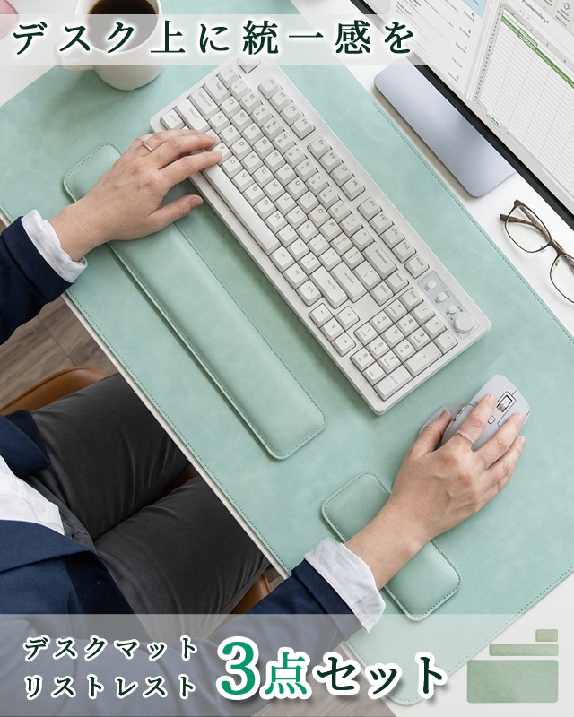 デスクに統一感と心地よさを。デスクマット&リストレスト 3点セット