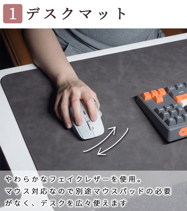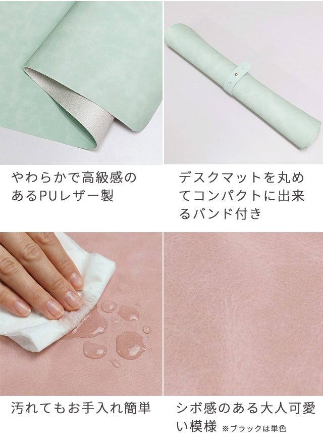 やわらかく高級感のあるフェイクレザーを採用。シボ感のある「大人可愛い」質感で、デスクに置くだけで一気に洗練された空間へ。