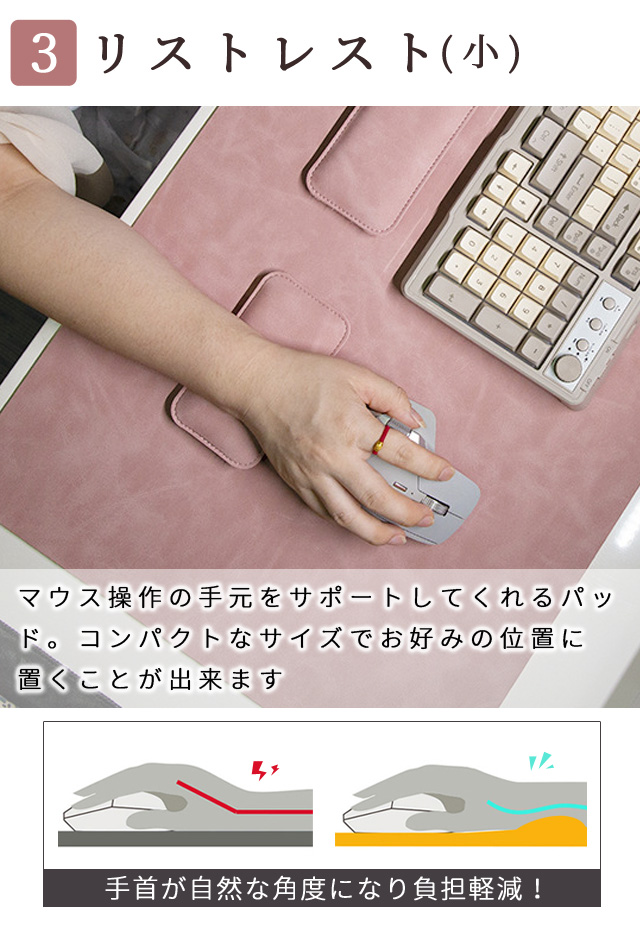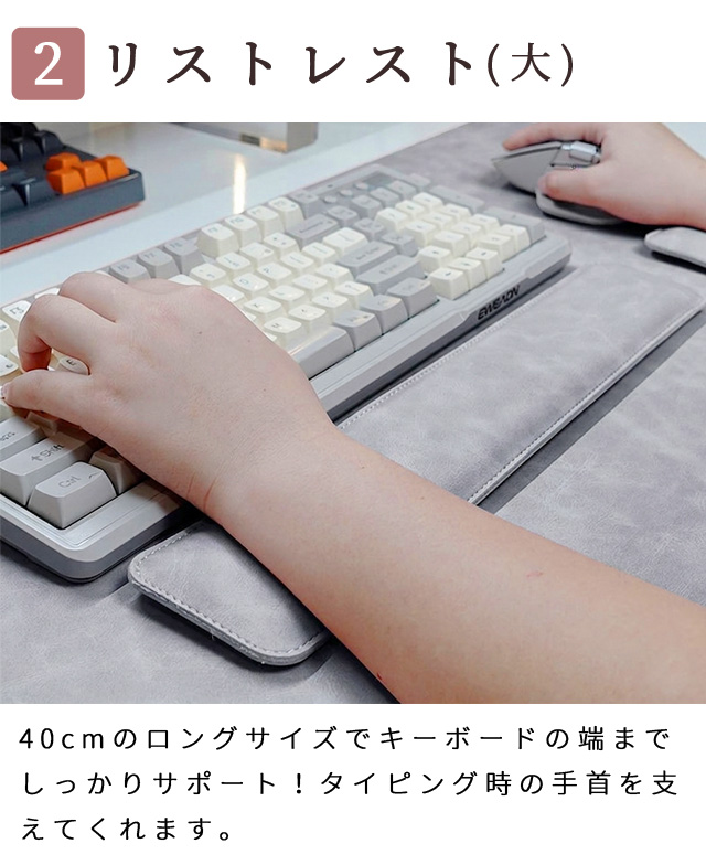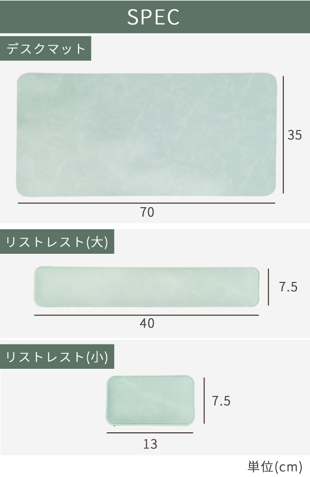 サイズ(約):デスクマット/70×35cm、リストレスト(大)/40×7.5cm、リストレスト(小)/13×7.5cm