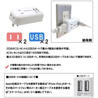 2口のACコンセントとUSB2ポートで最大4製品の使用が可能。