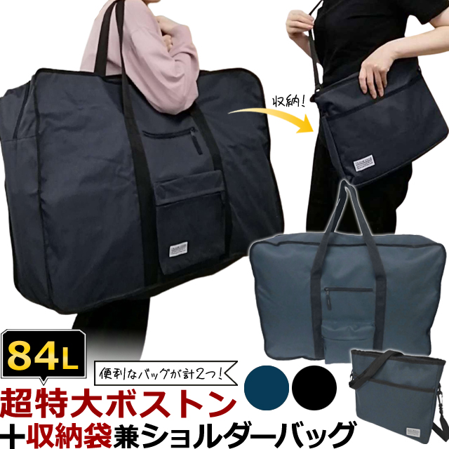最大容量約84Lの便利な特大ボストンバッグに、たたんで収納できるポーチが付いたお得なセット!
