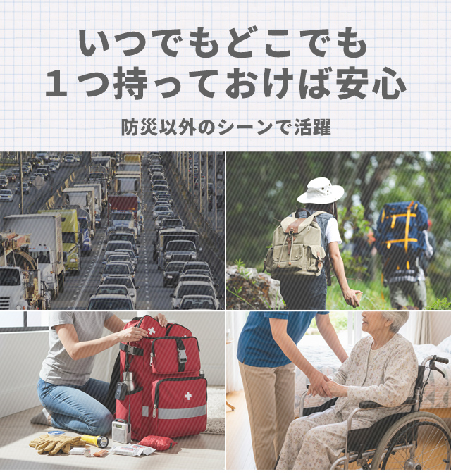 スマートフォンくらいのパッケージサイズで、防災ポーチに気軽に入れて置けるコンパクトサイズです。