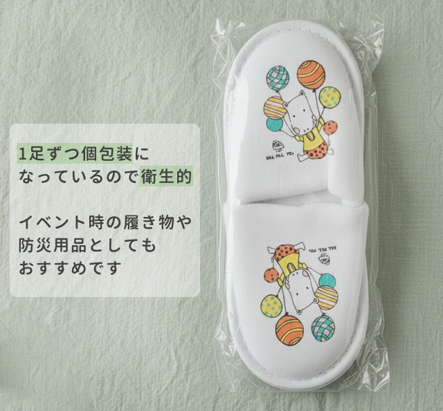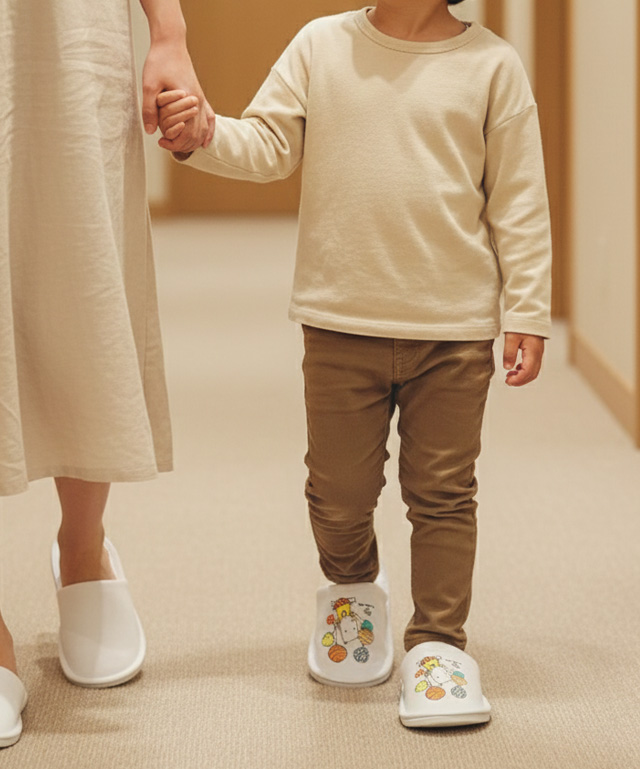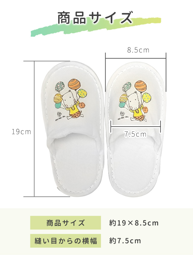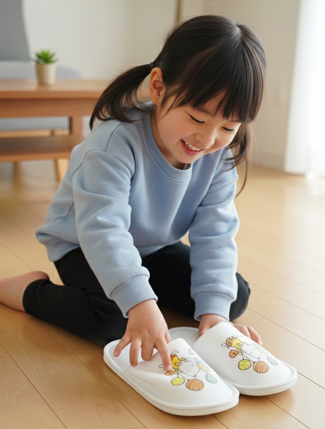 未来のリピーターへ、より一層楽しくなるかわいいキャラクターが特徴の子供向けスリッパ。