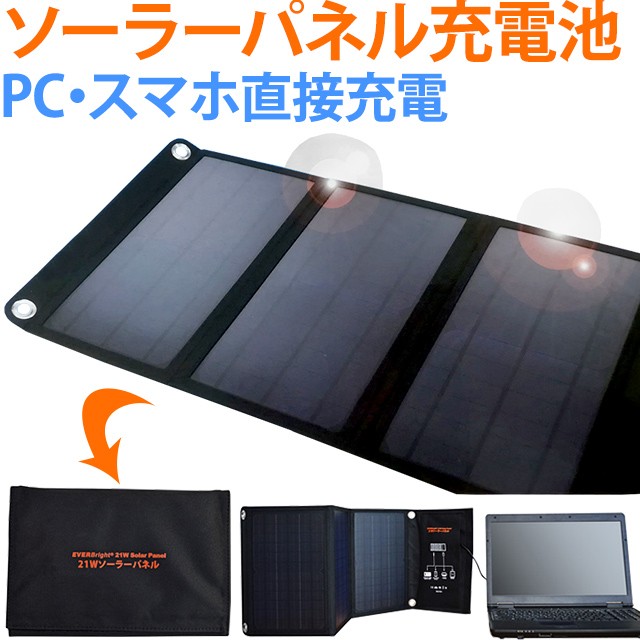 ・大型の21Wソーラーパネルを使用しているので、小型のパネルに比べて早い充電が可能。