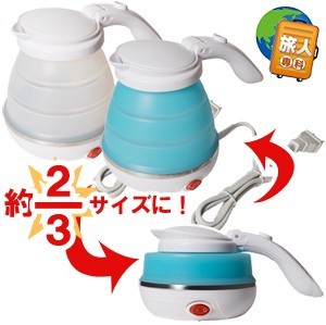 約2/3サイズに折りたたみ可能! *旅行用品/旅行便利グッズ/海外旅行グッズ/湯沸器/調理器具/海外使用可能/国外使用/折り畳み/機能的/あると便利/湯わかし/電気ケトル/お湯/電圧切り替え式/調理器/100-127V地域対応/220-240V地域対応/100〜127V/220〜240V/全世界対応/110V/115V/120V/127V/220V/230V/240V/ポット/入院/便利グッズ*