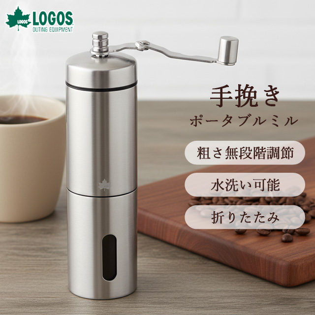 ハンドルが畳めるハンディコーヒーミル *ロゴス/logos/LOGOS/ポータブル/携帯用/持ち運び/持ち歩き/コンパクト/ミニ/小さい/小さめ/コーヒー/珈琲/コーヒーミル/ハンディコーヒーミル/手動/手挽き/粗挽き/細挽き/ドリップ/手回し/調整可能/ハンディ/アウトドア/キャンプ/レジャー/ひとりキャンプ/ソロキャンプ/おうちキャンプ/挽きたて/調理機器/ステンレス/コンパクト/手挽コーヒーミル/コーヒー豆挽き/珈琲ミル/コーヒーまめひき機/ミル/シルバー/ステンレスミル/かさばらない/男性/メンズ/レディース/女性/男女兼用/プレゼント/ギフト/贈り物/誕生日/バースデー/バースデイ/バレンタイン/ホワイトデー/彼氏/彼女/男友達/女友達/父の日/母の日/敬老の日/20代/30代/40代/50代/60代/機能的/コーヒー好き/ポータブル/携帯用/持ち運び/持ち歩き/コンパクト/ミニ/小さい/小さめ/コーヒー/珈琲/コーヒーミル/ハンディコーヒーミル/グッズ/無段階調整/ポータブルミル/キャンプ用品/アウトドア用品//キッチン/便利*