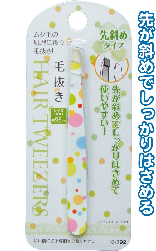 【まとめ買い=注文単位12個】95mm水玉柄毛抜き(先斜めタイプ) 18-792(se2a069)